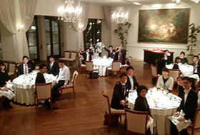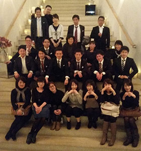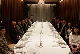 それぞれの家族を呼び、フランス料理を楽しんできました。当事務所で借りた5テーブルの中の一部です。