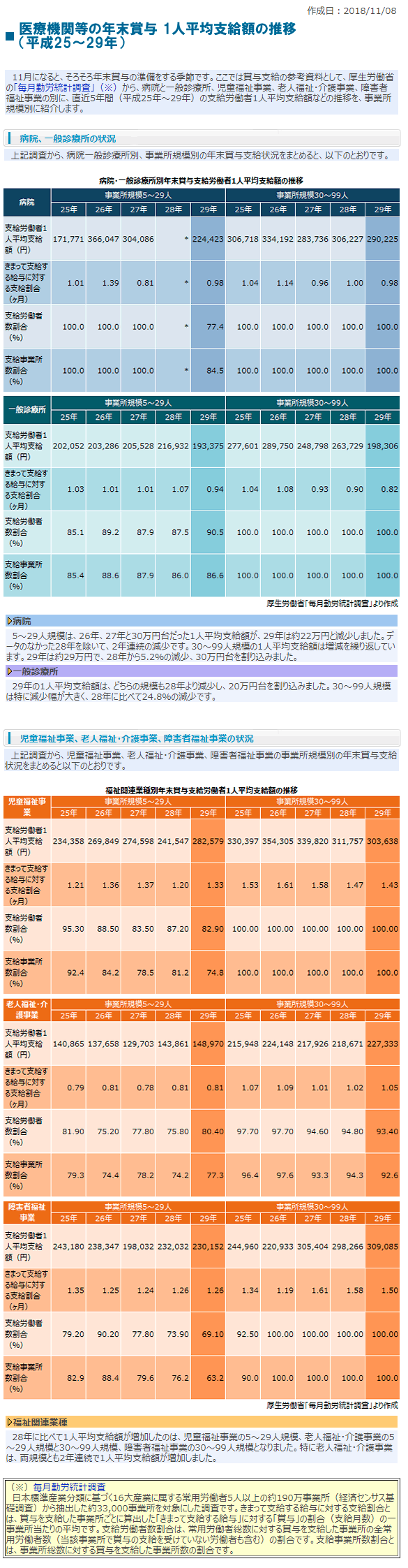 トップ > ブログ > 木村 > 医療機関等の年末賞与 1人平均支給額の推移(平成25~29年)
